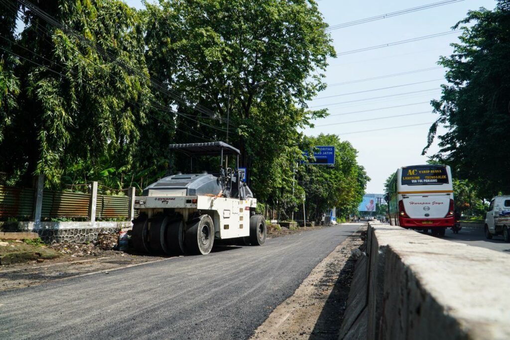 Pintu keluar Terminal Purabaya, atau lebih dikenal dengan sebutan Terminal Bungurasih di Kabupaten Sidoarjo, masih mengalami perbaikan pada tahap pengecoran, Selasa (10/3/2026). Perbaikan tersebut ditargetkan selesai dan dapat beroperasi dua hari ke depan.