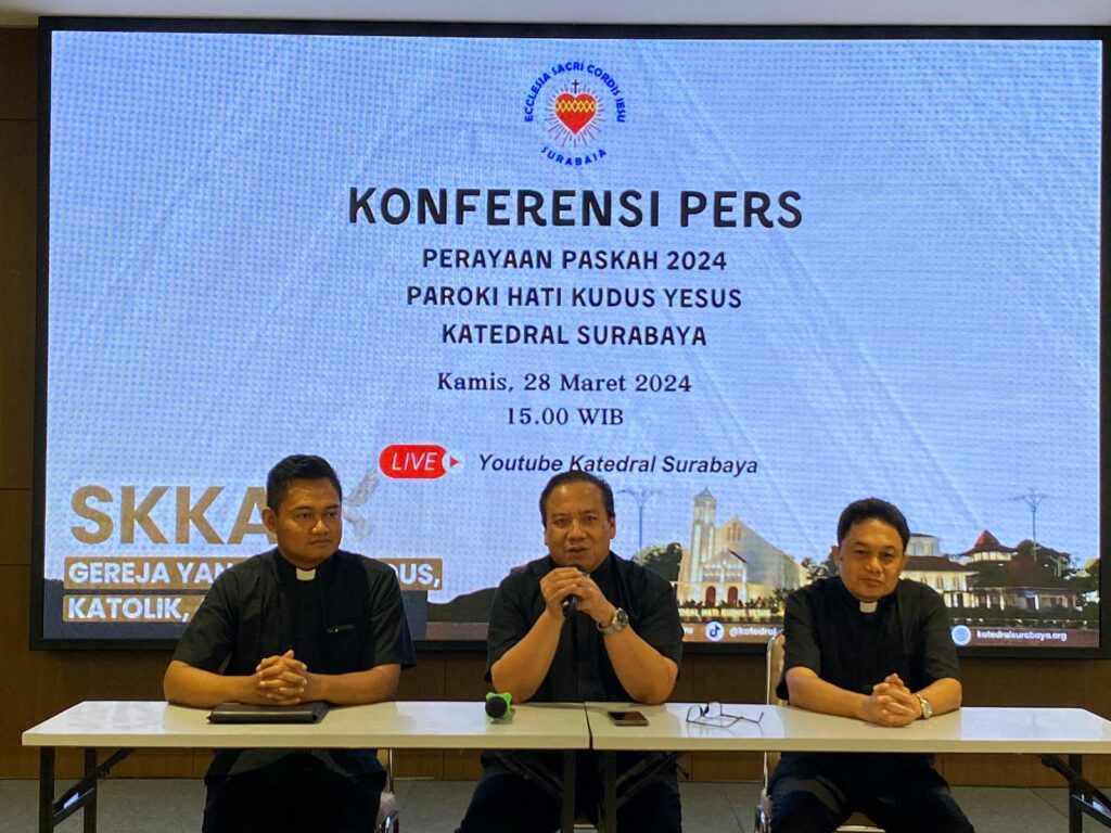 Pengurus Gereja Katolik Paroki Hati Kudus Yesus Katedral Surabaya menggelar jumpa pers, Kamis (28/3/2024), terkait pelaksanaan serangkaian ibadah paskah.