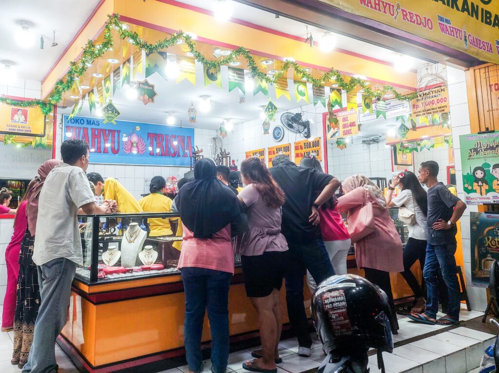 Dari pantauan suarasurabaya.net, deretan Toko Emas yang berada di Jalan Pasar Kembang, Surabaya padat oleh pembeli.