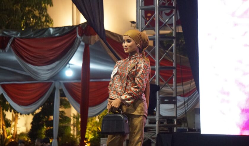 Para peserta tampil dengan sangat percaya diri di atas panggung menonjolkan busana muslim dengan iringan koreografi sederhana. (nis/kak/ham)