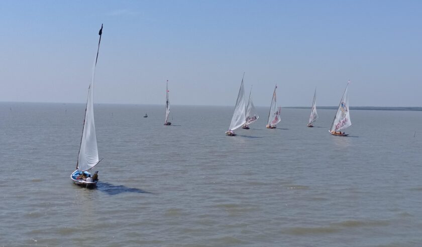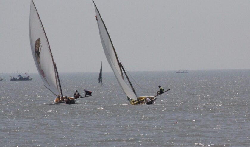 Sebanyak 49 perahu layar yang dikemudikan oleh nelayan asal Surabaya Utara beradu cepat dalam balap perahu di Laut Kenjeran Surabaya, pada 20-21 Agustus 2024.
