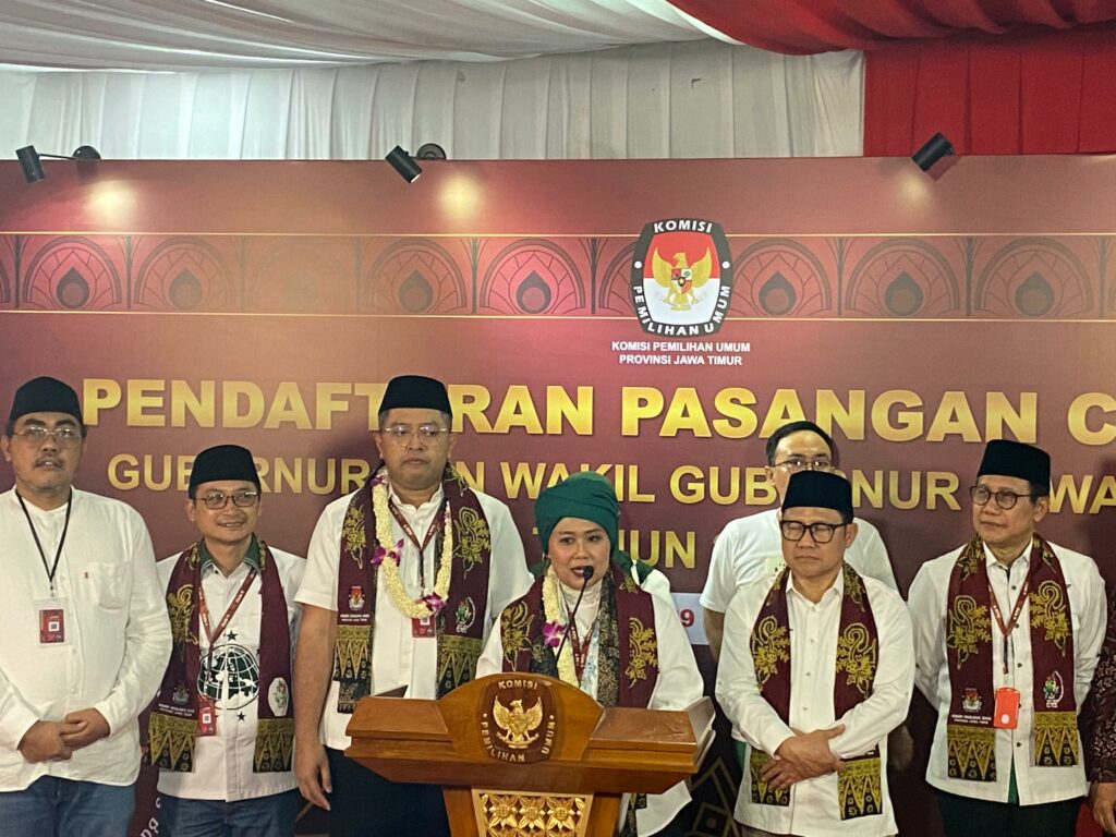 Luluk Nur Hamidah-Lukmanul Khakim Bakal Calon Gubernur dan Calon Wakil Gubernur dari PKB resmi mendaftarkan diri ke KPU Jatim, pada Kamis (29/8/2024) malam.