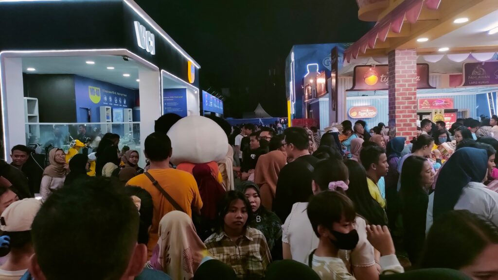 Potret kemeriahan Pekan Raya Jatim (PRJ) di Surabaya, Sabtu (21/10/2023). Banyak orang yang memilih menghabiskan akhir pekan mereka di PRJ.