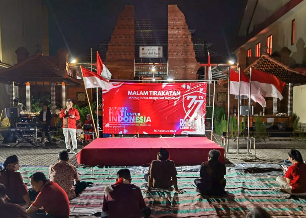 Dalam rangka menyambut HUT ke-77 Kemerdekaan RI, Perumahan Royal Residence di Wiyung Surabaya gelar Malam Tirakatan pada Selasa (16/8/2022).