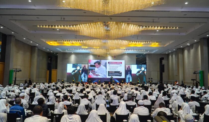 Shafira Tour and Travel menggelar manasik haji untuk ratusan jemaah calon haji yang akan berangkat bersama Shafira, Sabtu (11/4/2026).