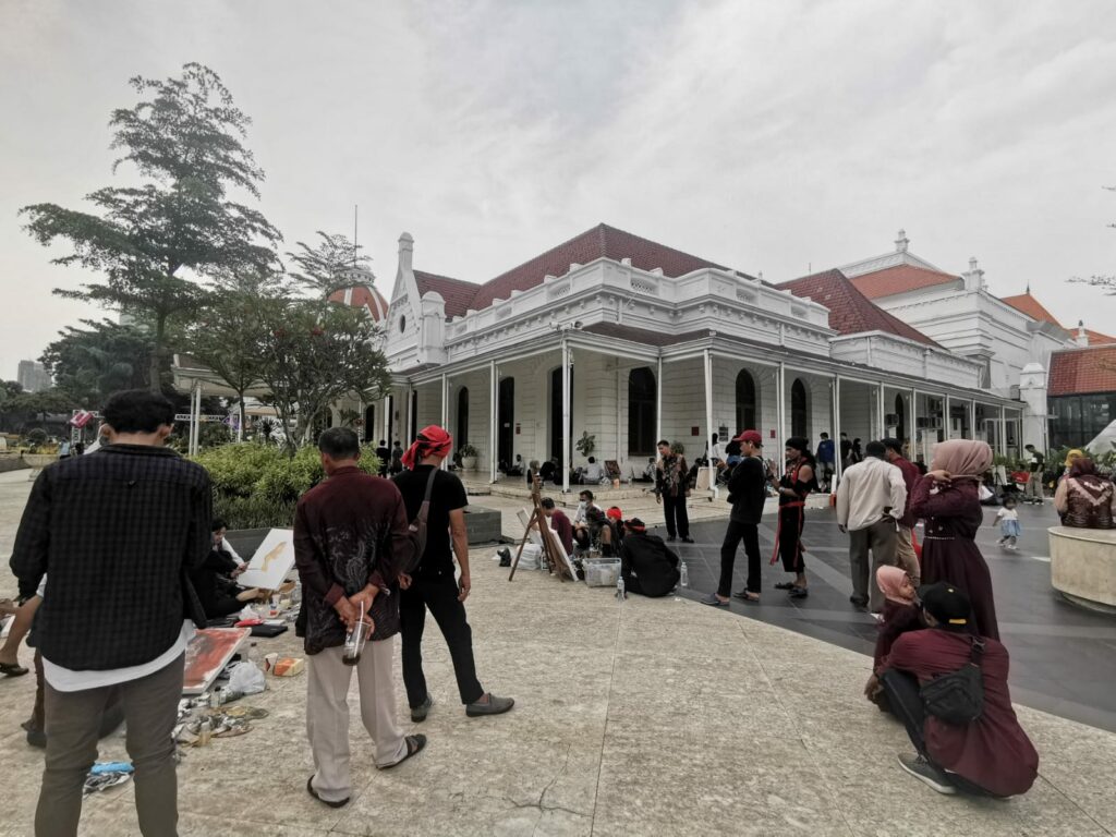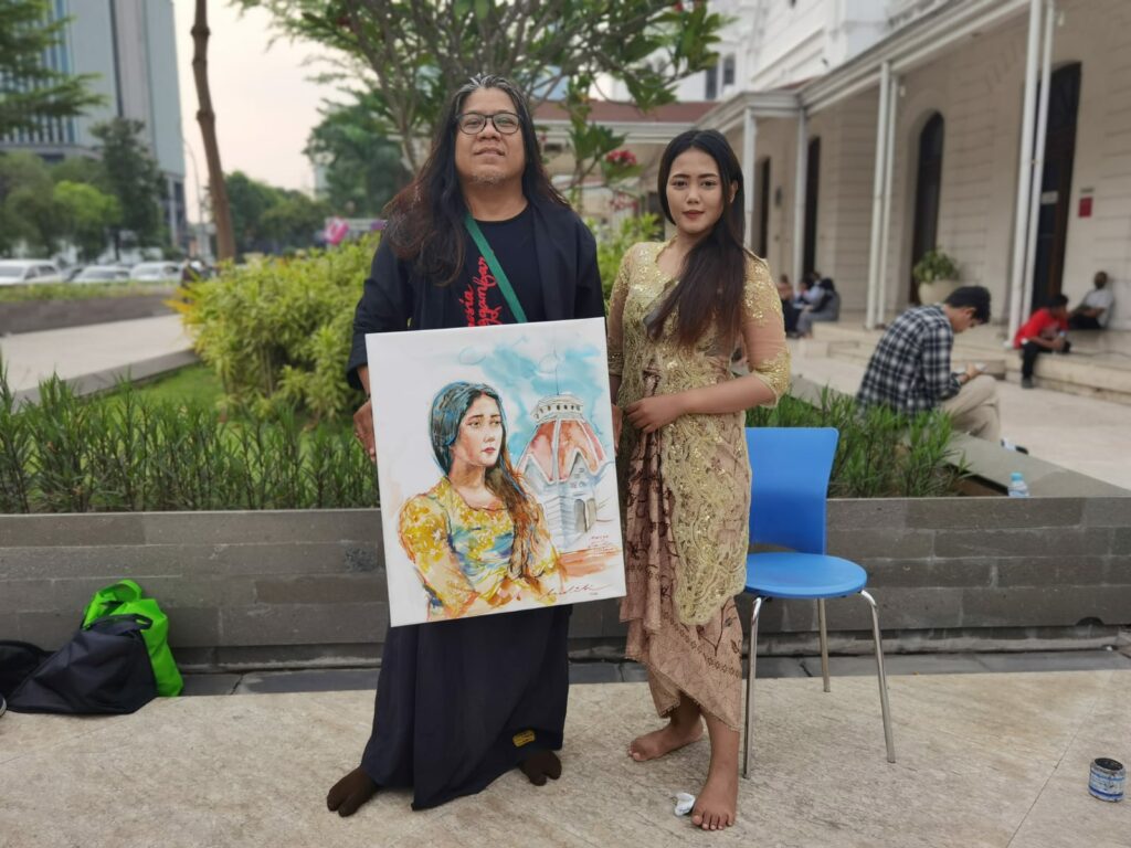 Sebanyak 35 pelukis Jawa Timur mengadakan kegiatan melukis on the spot di Alun-Alun Kota Surabaya pada Sabtu, (29/10/2022).