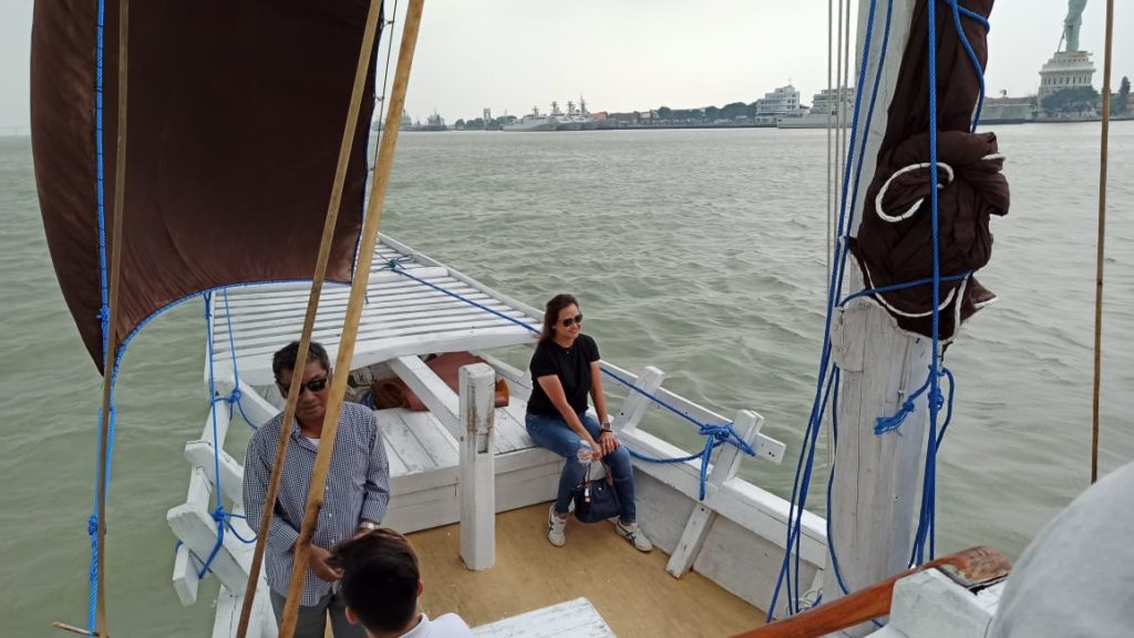 Monique Dwijayanti, Supervisor Pengembangan Bisnis PT Plindo Properti Indonesia untuk Surabaya North Quay mengatakan Program Berlayar Tepi Laut, Dilaksanakan seminggu dua kali. Berangkat dari Surabaya Veem pada pukul 13.45 -14.00 lalu berangkat berlayar pukul 14.00 -16.00 WIB. Kapasitas maksimal 30 orang dengan biaya Rp200 ribu per orang. Teks: Manda Roosa / Foto : Dukut Noegroho suarasurabaya.net