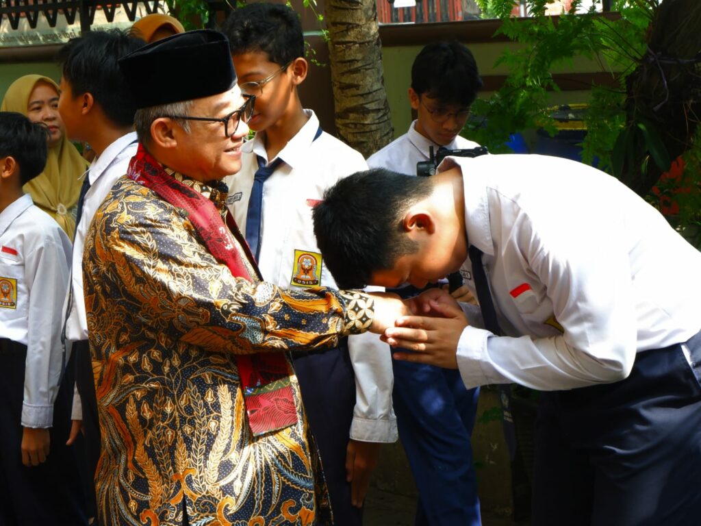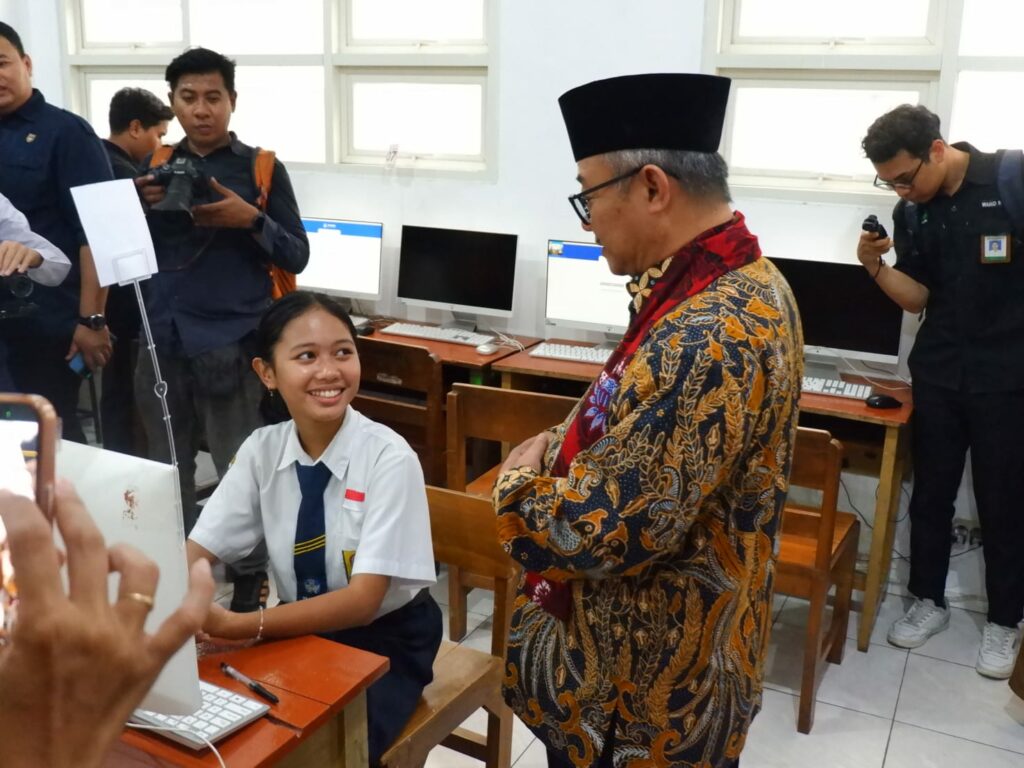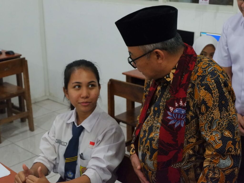 Dalam kunjungannya, Abdul Mu’ti berdialog langsung dengan para siswa serta meninjau proses pelaksanaan ujian untuk memastikan kegiatan berjalan lancar dan tertata dengan baik.