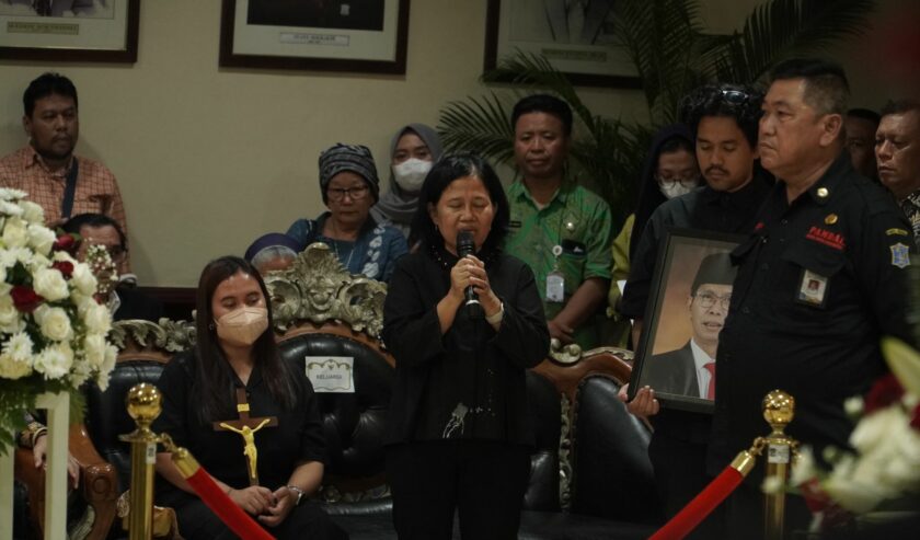 Sebelum dikebumikan, lebih dulu dilakukan upacara penghormatan terakhir untuk Adidi Gedung DPRD Kota Surabaya. Penghormatan tersebut dipimpin Eri Cahyadi Wali Kota Surabaya.