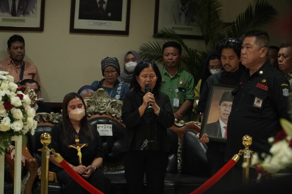 Sebelum dikebumikan, lebih dulu dilakukan upacara penghormatan terakhir untuk Adidi Gedung DPRD Kota Surabaya. Penghormatan tersebut dipimpin Eri Cahyadi Wali Kota Surabaya.