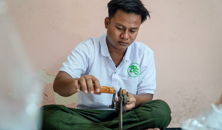 “Di sini total ada sembilan pengrajin dari Jepara, Jawa Tengah, yang bekerja membuat gelang untuk dipakai para jemaah calon haji, setelah mereka tiba di AHES,” katanya, Kamis (23/4/2026).
