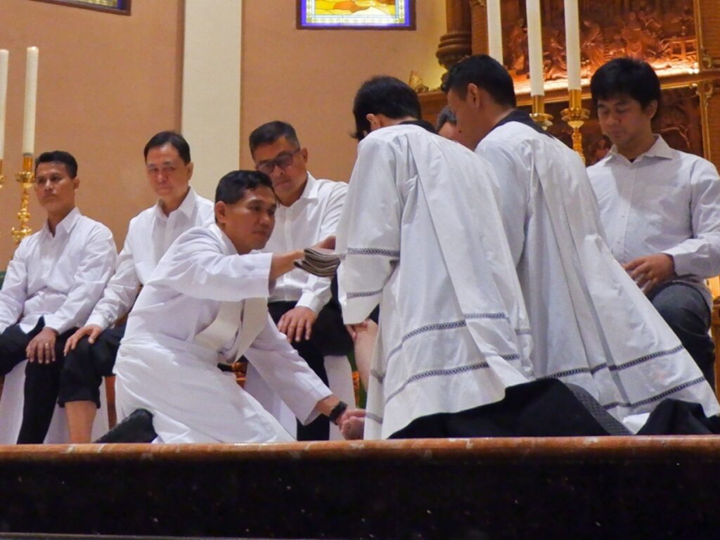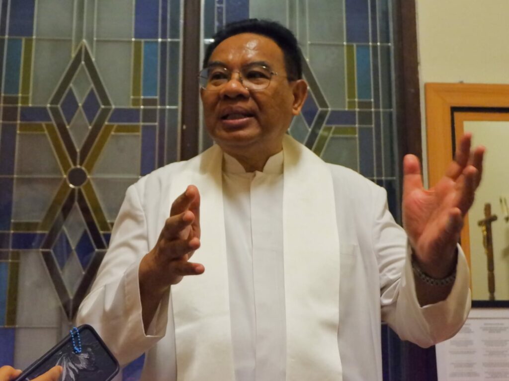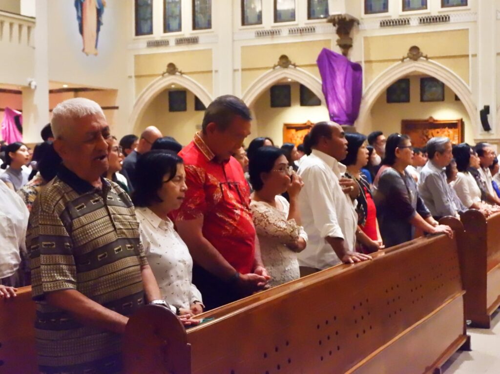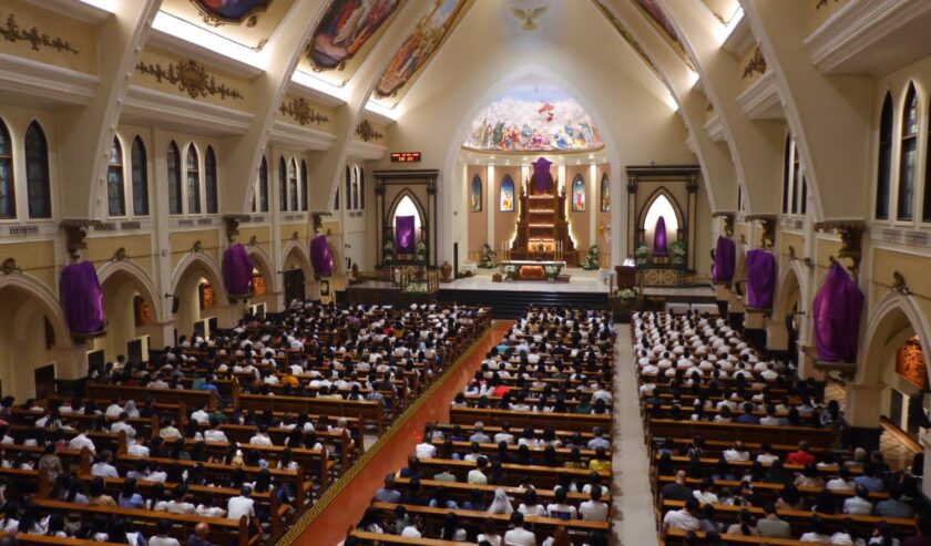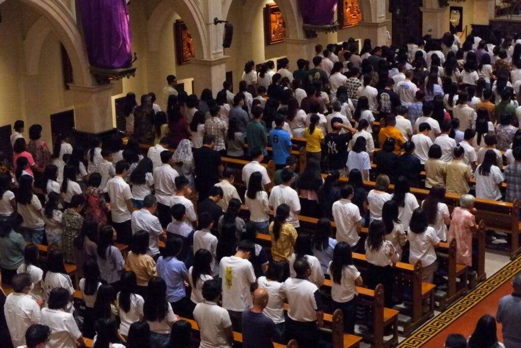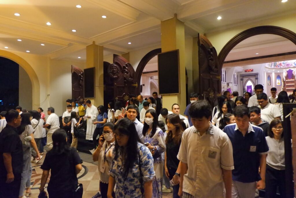 Ribuan umat Katolik menghadiri misa Kamis Putih di Gereja Santo Yakobus Citraland, Surabaya yang digelar dalam dua sesi untuk mengakomodasi tingginya partisipasi jemaat.