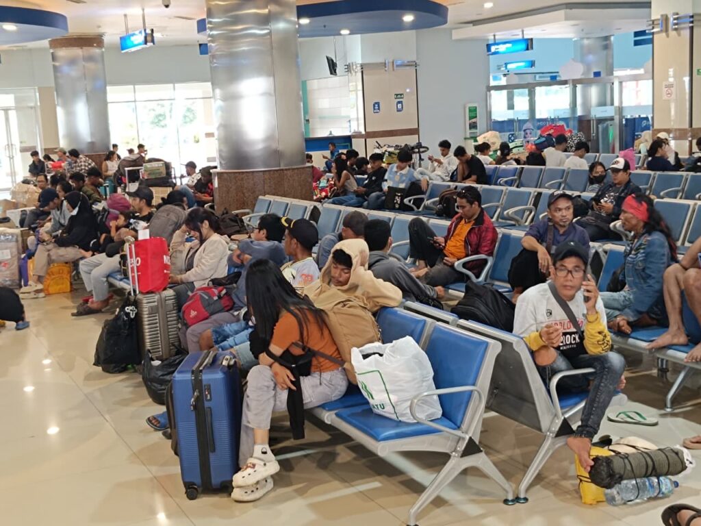 Ribuan masyarakat masih memadati Pelabuhan Tanjung Perak Surabaya untuk melakukan mudik pada H-2 Lebaran Idulfitri 1447 Hijriah, atau Kamis (19/3/2026).