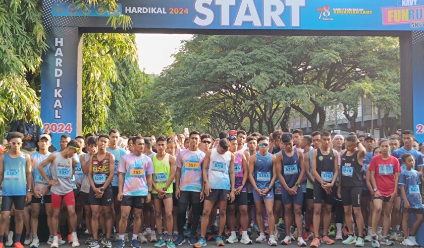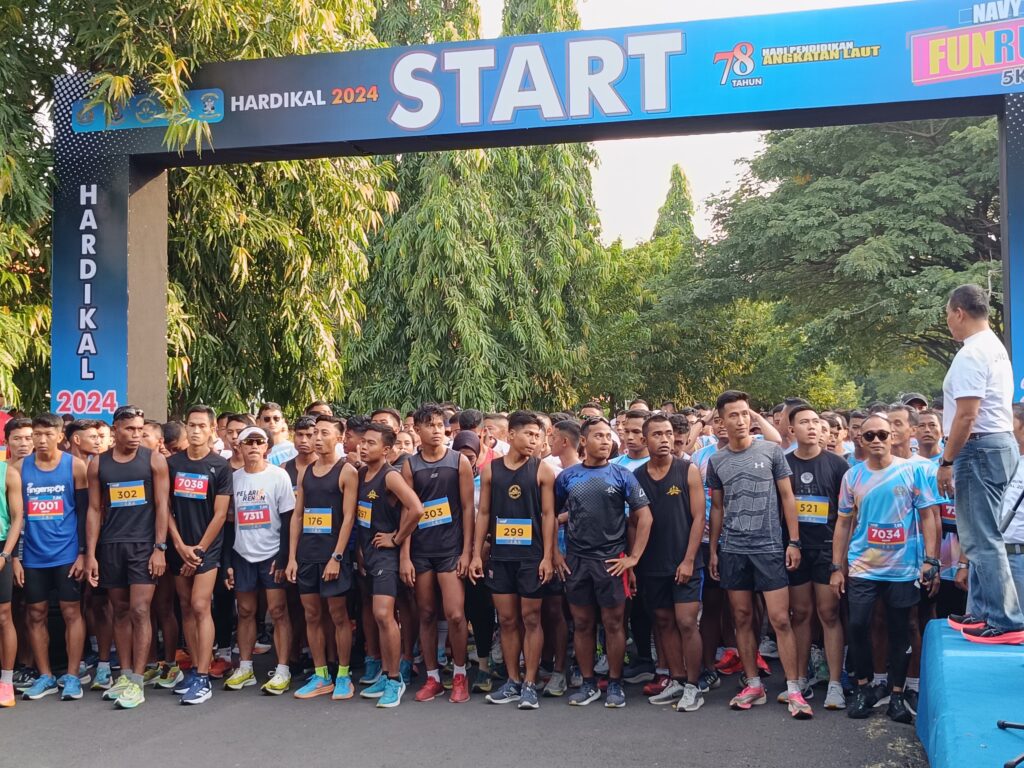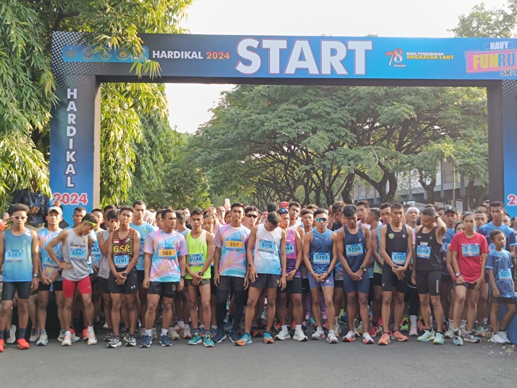 Sekitar 2.000 peserta lari dari unsur TNI-Polri maupun masyarakat umum mengikuti Navy Fun Run dalam rangka peringatan Hari Pendidikan TNI Angkatan Laut (Hardikal) ke-78, di wilayah TNI AL Bumi Moro, Moro Krembangan, Surabaya, Minggu (5/5/2024).