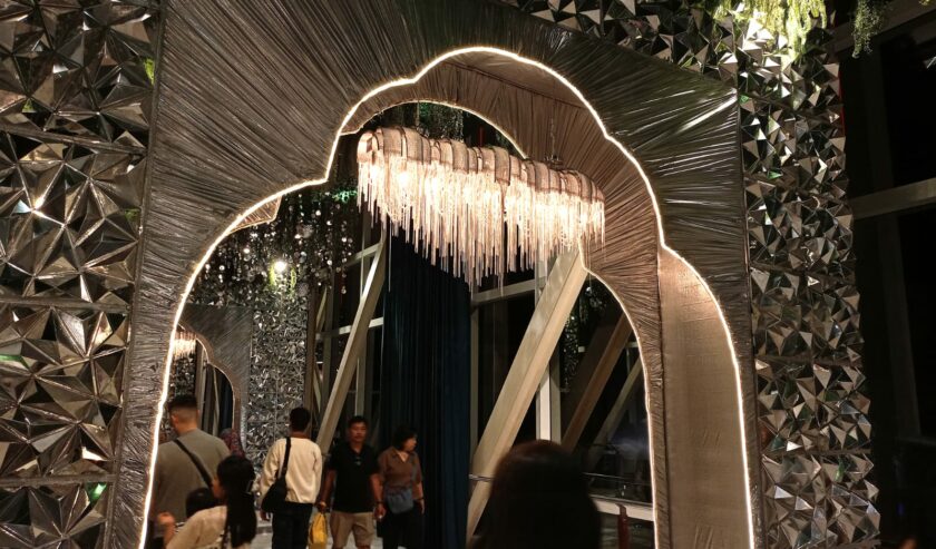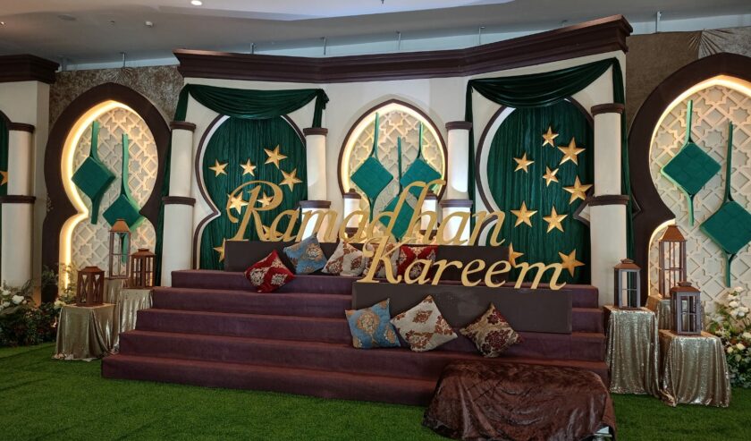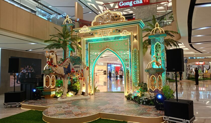 Dekorasi bernuansa Islami seperti lampion, dan kubah masjid tampak dipasang di beberapa titik untuk menyambut para pengunjung yang datang saat bulan suci Ramadan.