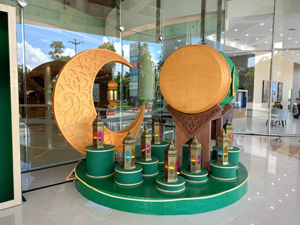 Dekorasi bernuansa Islami seperti lampion, dan kubah masjid tampak dipasang di beberapa titik untuk menyambut para pengunjung yang datang saat bulan suci Ramadan.