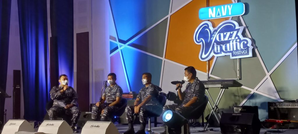 Road to Navy Jazz Traffic Festival dibuka dengan penampilan apik dari Laksmana Muda TNI Iwan Isnurwanto membawakan lagu berjudul “Kata Dari Hati” ciptaannya sendiri yang digemakan di Hall Suara Surabaya Centre, Kamis (31/3/2022).