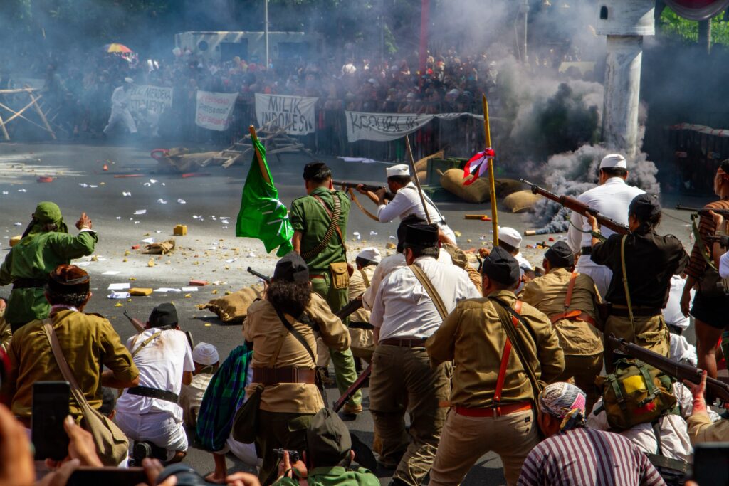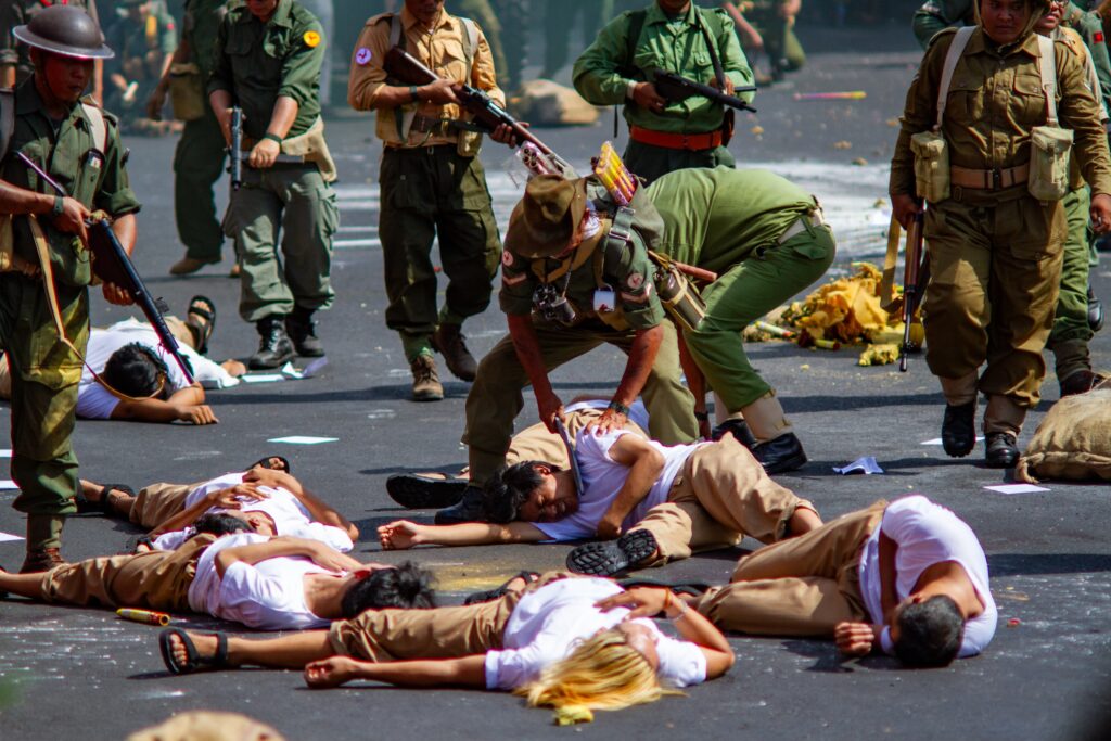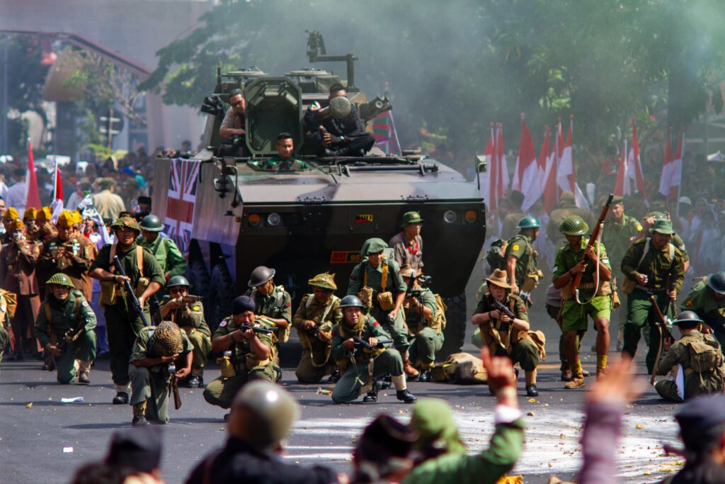 Pertunjukan pertempuran perjuangan membuka rangkaian Parade Surabaya Juang di Monumen Tugu Pahlawan.