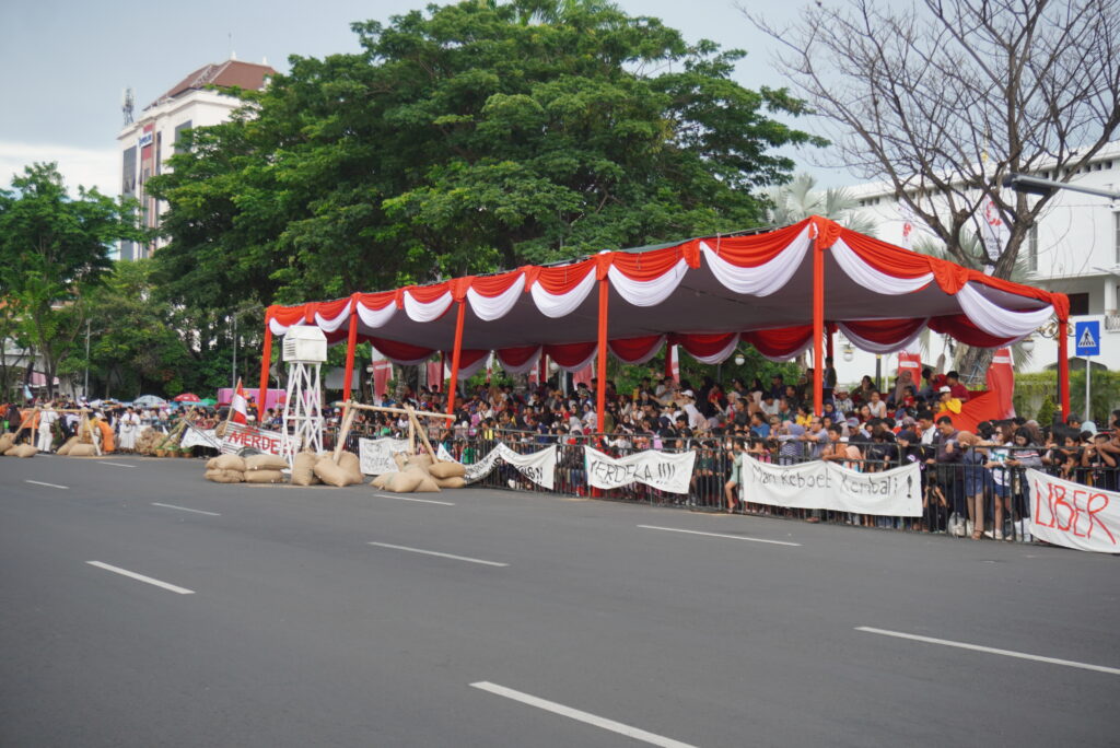 Parade tersebut melibatkan lebih dari dua ribu peserta. Pertunjukan teatrikal disajikan di tiga titik utama sepanjang rute dari Tugu Pahlawan sebagai pembuka, berlanjut ke Perempatan Siola dengan adegan perlawanan, dan mencapai klimaks pertempuran di Balai Pemuda.