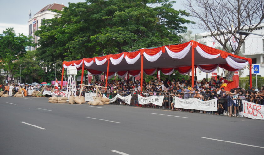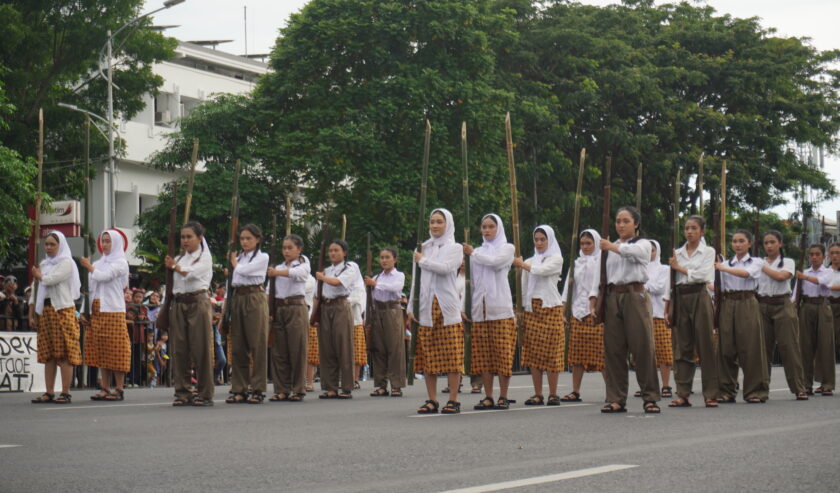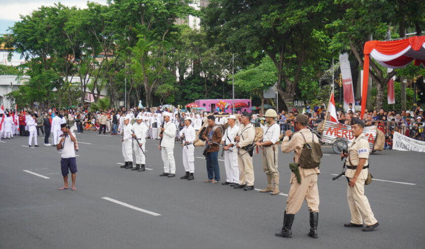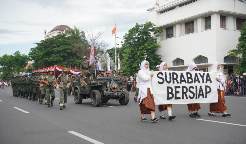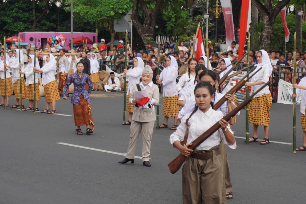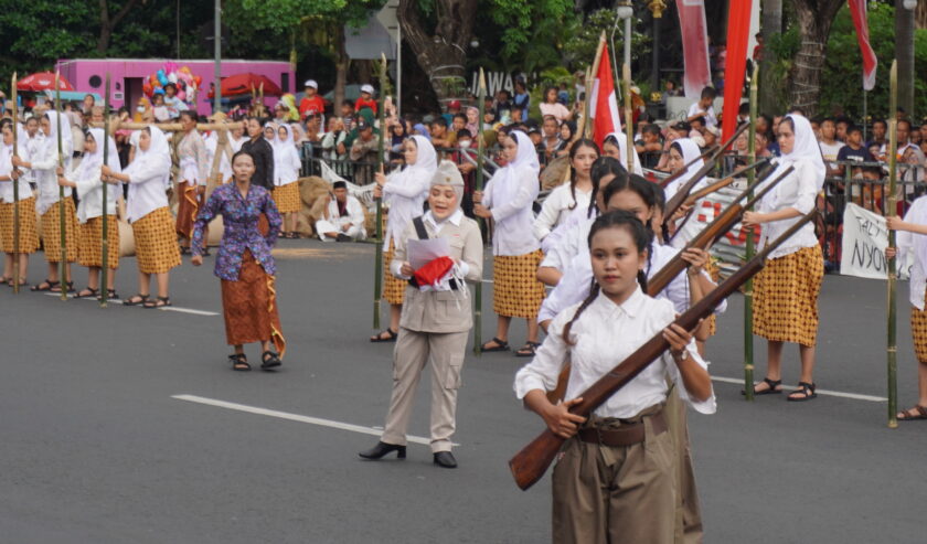 Parade Surabaya Juang 2025 mempersembahkan kisah pahlawan perempuan yang jarang terekspos, termasuk tokoh legendaris Mbok Dar Mortir di Surabaya, pada Minggu (2/11/2025).