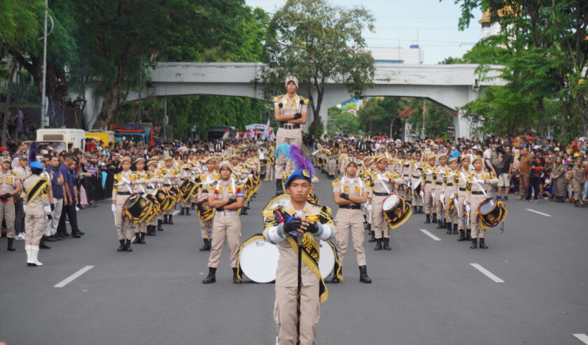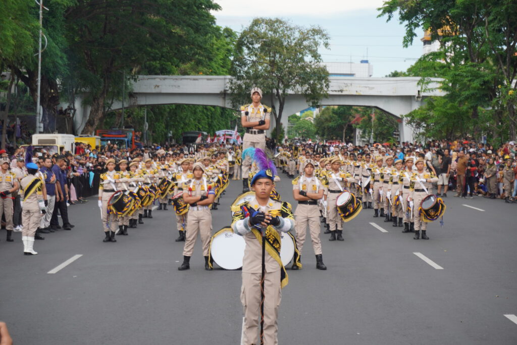 Parade Surabaya Juang 2025 bukan hanya menyuguhkan pawai atau iring-iringan, teaterikal, serta puisi saja, tetapi juga dimeriahkan dengan suguhan beberapa penampilan grup drum band yang ikut berjalan dari titik start di Jalan Pahlawan hingga Jalan Gubernur Suryo, depan Balai Pemuda.