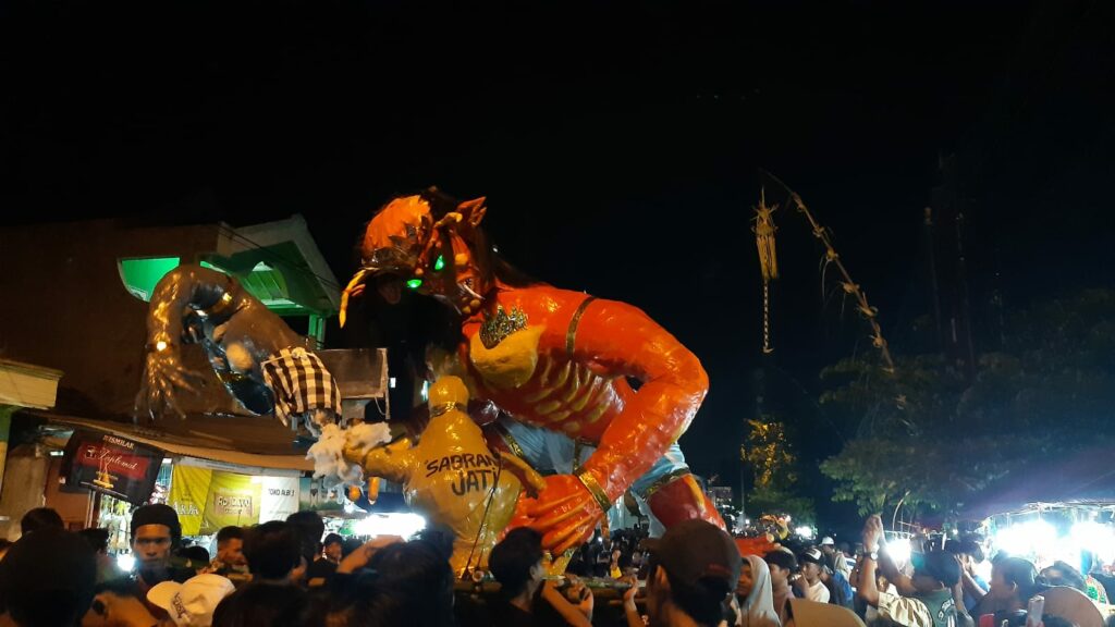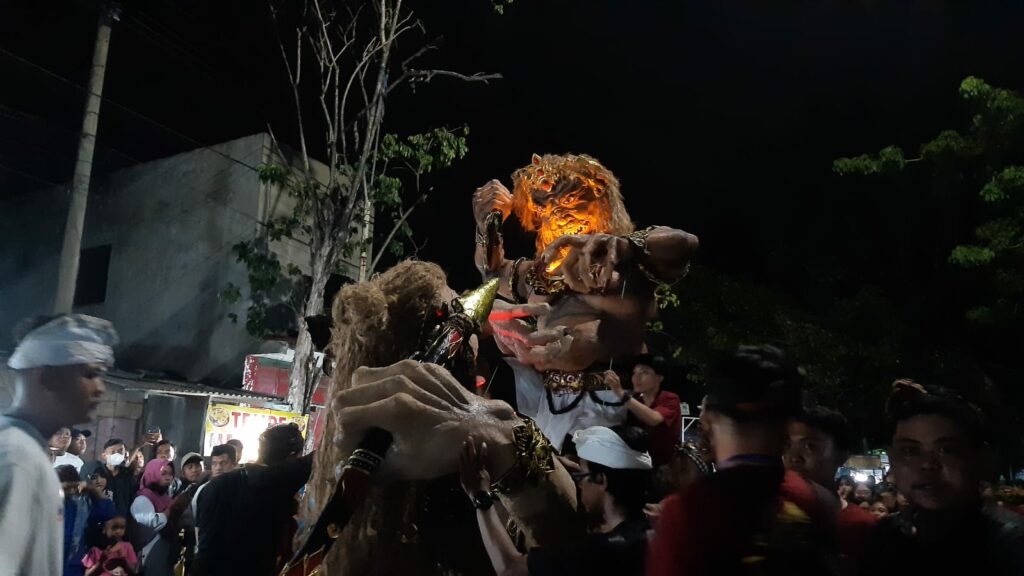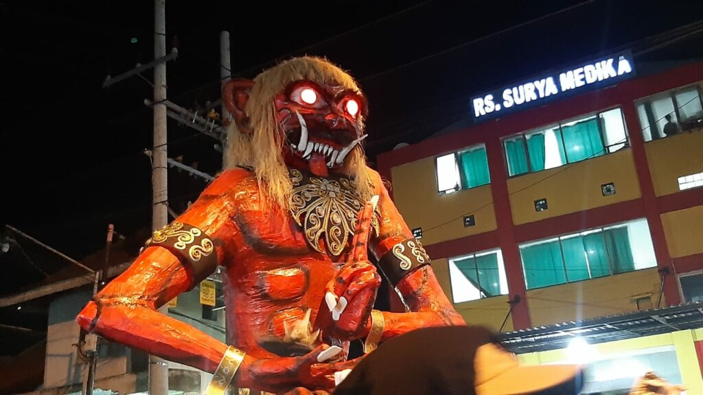 Pawai ogoh-ogoh yang selama ini telah menjadi agenda tahunan, kembali dilaksanakan di Desa Laban, Menganti, Gresik pada Minggu (10/3/2024) malam.