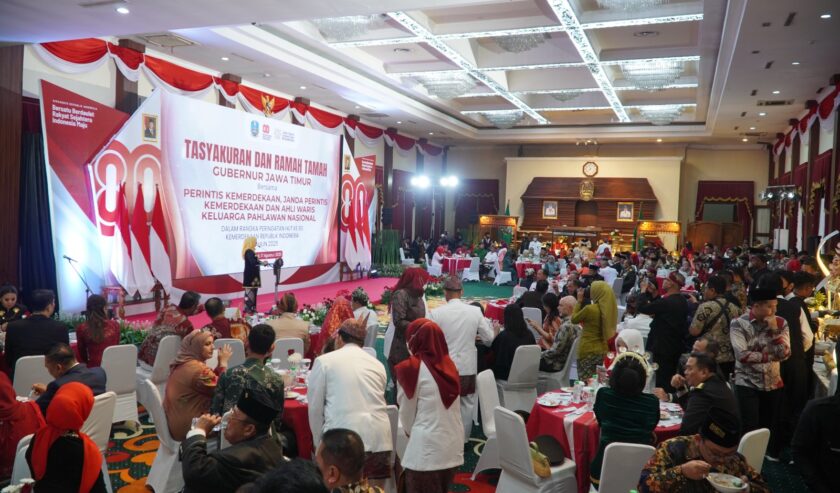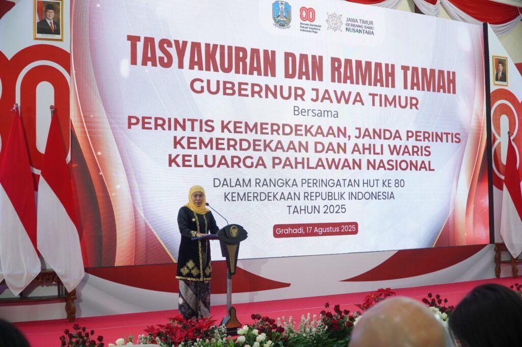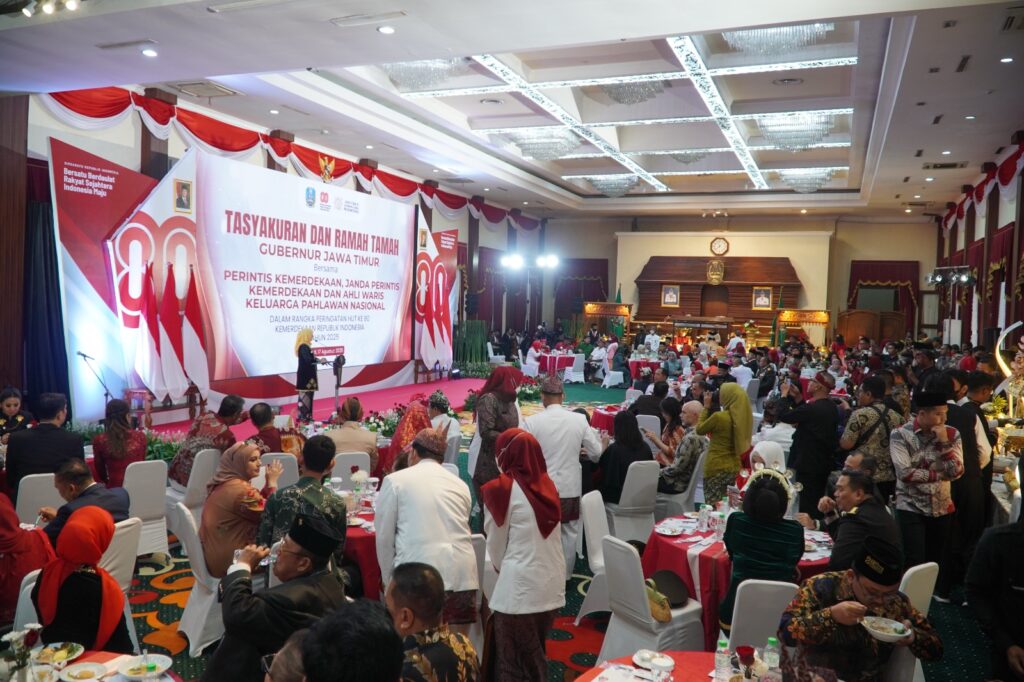 Pemerintah Provinsi (Pemprov) Jawa Timur menggelar Resepsi Kenegaraan dan Tasyakuran di Gedung Negara Grahadi Surabaya, pada Minggu (17/8/2025).