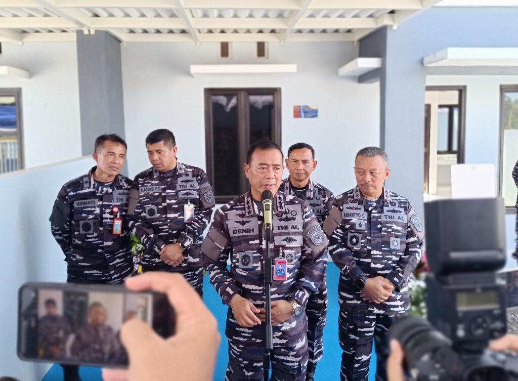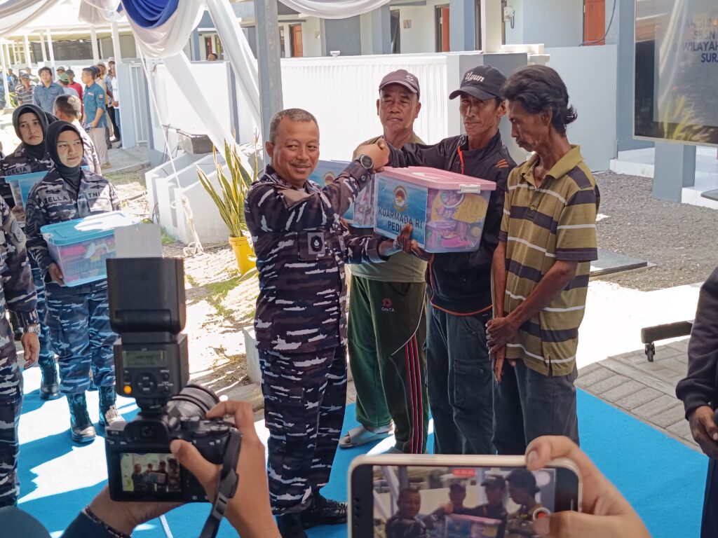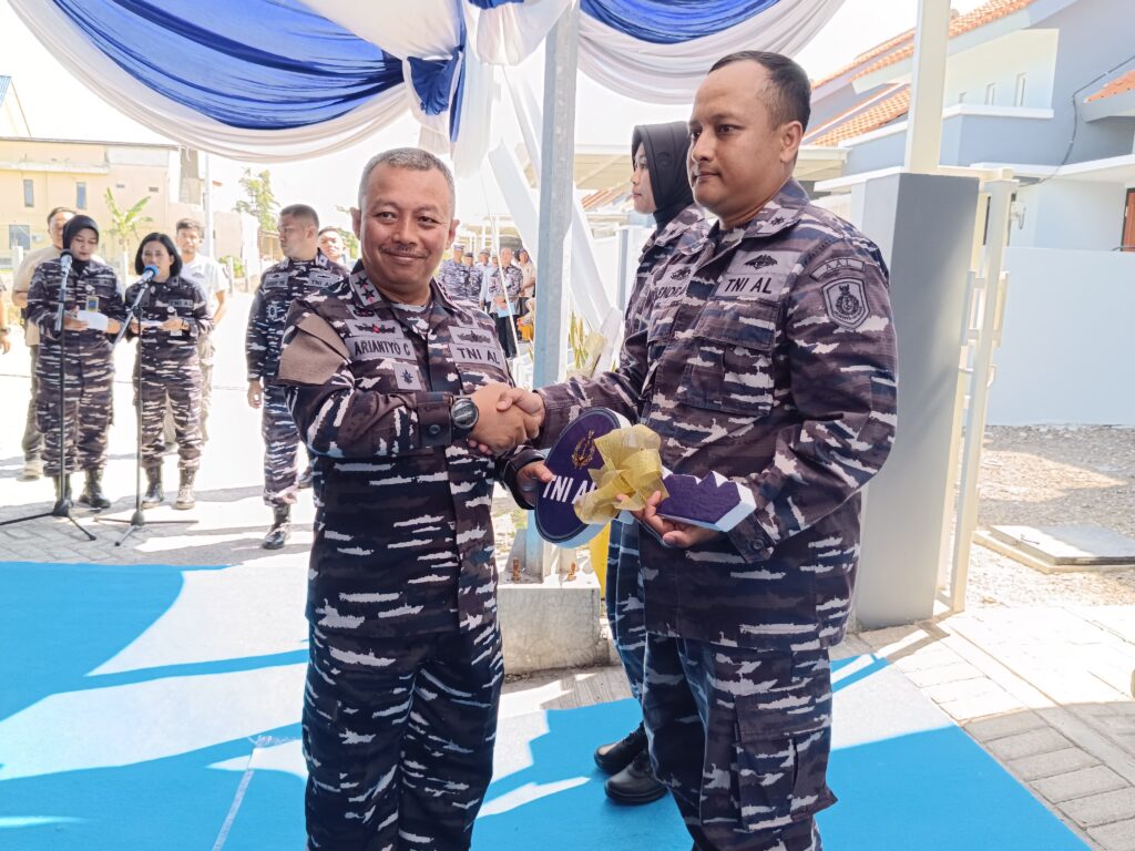 Laksamana Madya TNI Denih Hendrata Panglima Komando Armada Republik Indonesia (Pangkoarmada RI) menyerahkan kunci rumah negara T-45 kepada personel yang berdinas di Komando Utama (Kotama) atau Satuan Kerja (Satker) wilayah Surabaya, Jumat (31/5/2024).