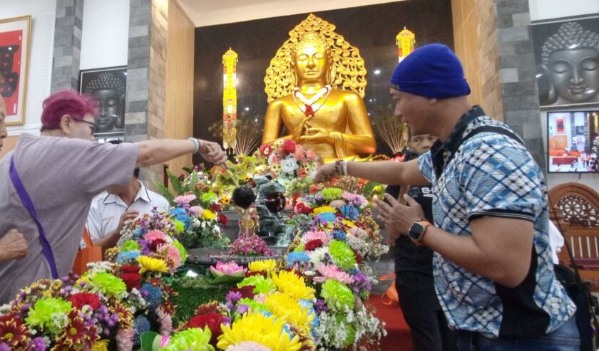 Rangkaian ibadah Hari Raya Waisak di Wihara BDC pada pagi tadi dimulai dengan prosesi memandikan rupang Buddha dan amisapuji. Yakni memberikan persembahan seperti lilin, dupa, bunga dan buah.