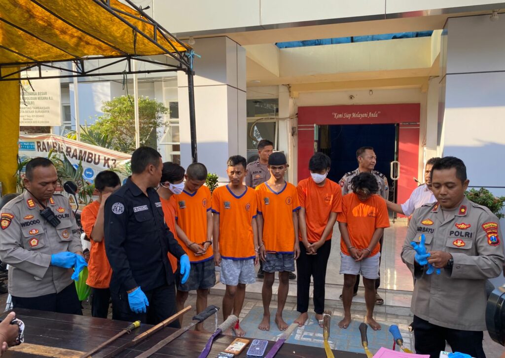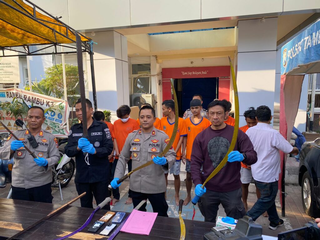 Kompol Ari Bayuaji Kapolsek Tambaksari mengatakan, anggota polisi meringkus sekelompok remaja itu pada Kamis (12/10/2023) sekitar pukul 04.00 WIB di kawasan Kedung Cowek ketika kedua kelompok itu hendak tawuran. (saf/ipg)