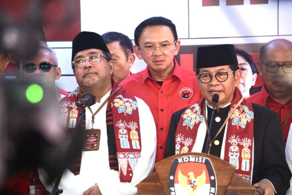 Mereka datang dengan didampingi para pejabat PDI Perjuangan baik dari DPP maupun DPD DKI Jakarta. Keduanya mengenakan pakaian khas Betawi untuk mendaftarkan diri sebagai calon gubernur dan wakil gubernur DKI Jakarta.
