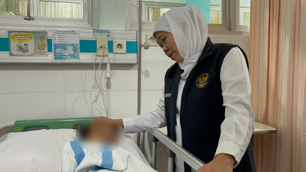 Selain itu, Gubernur Jatim menjenguk lima korban tertimpa reruntuhan bangunan musala Pondok Pesantren Al Khoziny ambruk, yang baru berhasil dievakuasi hari ketiga pencarian dengan selamat.