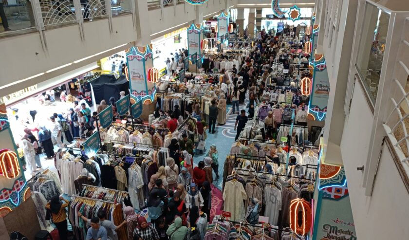 Beberapa toko pakaian tampak lebih ramai dibanding hari biasa, banyak juga pengunjung yang memanfaatkan waktu untuk sekadar berjalan-jalan dan menikmati suasana pusat perbelanjaan yang dipenuhi dekorasi bernuansa Ramadan.