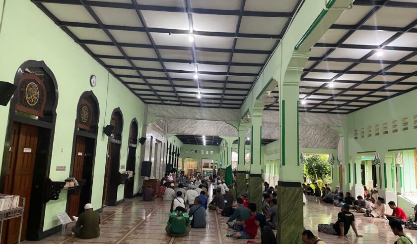 Setelah berbuka puasa, salah satu masjid tertua di Kota Surabaya ini menggelar salat tarawih yang pada hari ketiganya dibanjiri jemaah pemuda.