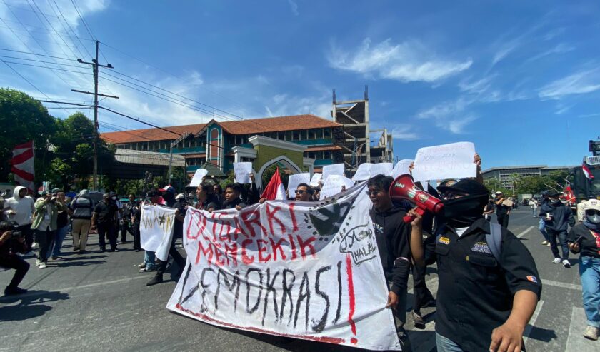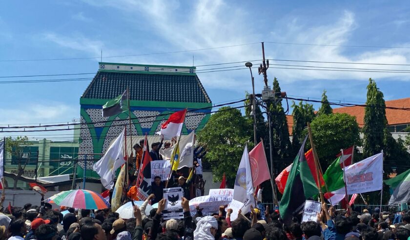 Ratusan mahasiswa dari berbagai kampus mulai menggeruduk Gedung DPRD Provinsi Jawa Timur, Jumat (23/8/2024) untuk menggelar demonstrasi mengawal putusan Mahkamh Konstitusi (MK).