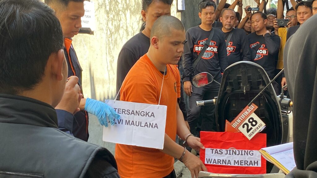 Satreskrim Polres Mojokerto menggelar rekonstruksi kasus mutilasi yang dilakukan Alvi Maulana (24 tahun) di sebuah rumah kontrakan di Jalan Lidah Wetan, Lakarsantri, Surabaya, Rabu (17/9/2025).