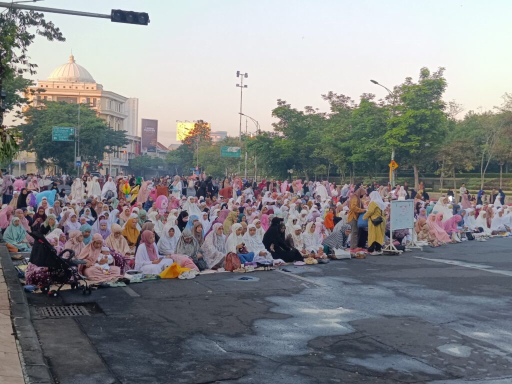 Sekitar seribuan warga persyarikatan Muhammadiyah Bubutan dan sekitarnya, melangsungkan salat Iduladha 1445 Hijriyah di Jalan Pahlawan, Bubutan, Surabaya, pada Senin (17/6/2024) pagi.