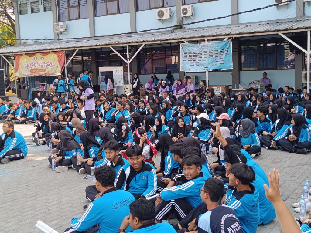 Ratusan pelajar dari SMA Labschool Unesa 1 Surabaya menyambut meriah roadshow Garuda Futsal League (GFL) ketiga, pada Jumat (16/8/2024).