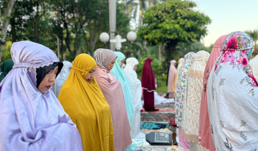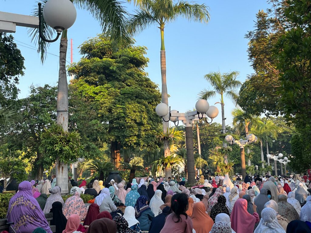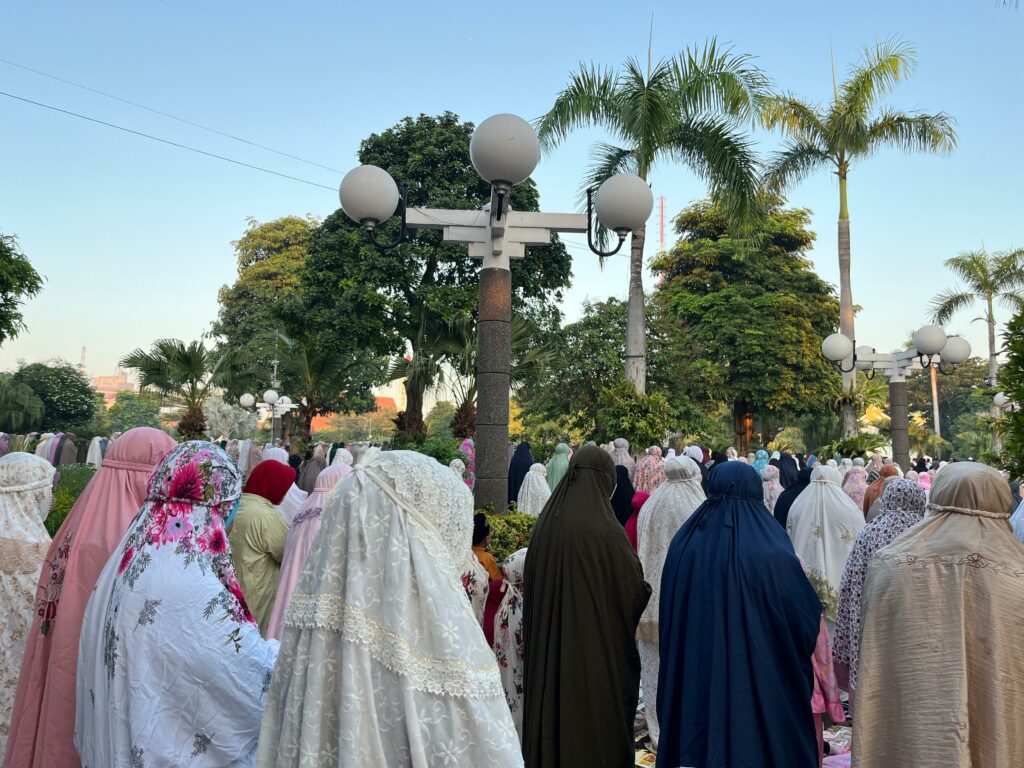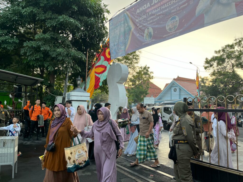 Ribuan jemaah mengikuti salat Iduladha di Balai Kota Surabaya, Senin (17/6/2024) pagi. Saf di halaman Taman Surya Balai Kota Surabaya penuh beberapa menit sebelum salat dimulai pukul 06.00 WIB.
