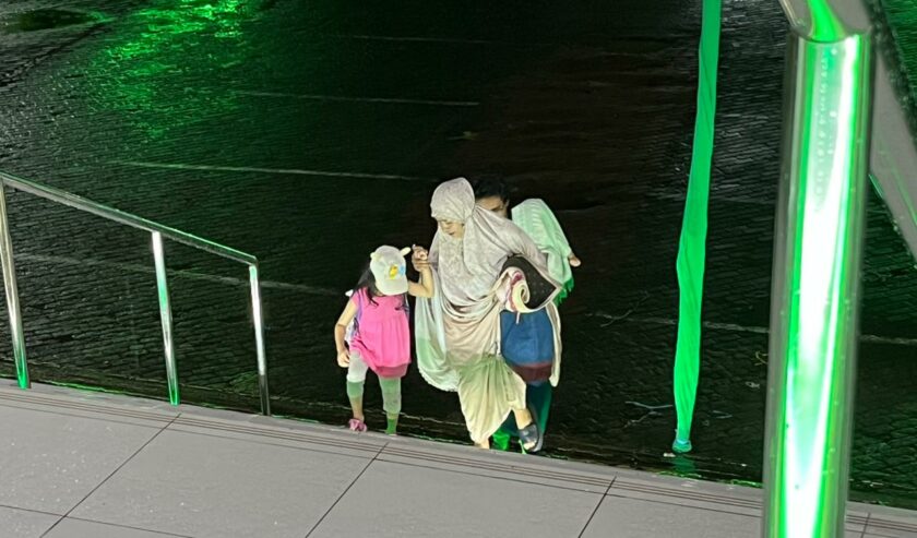 Salat tarawih pertama di Masjid Raya Islamic Center Jatim berlangsung khidmat meski kawasan tersebut diguyur hujan.