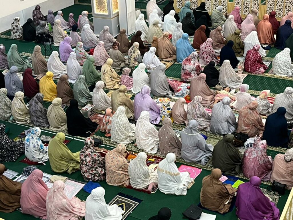 Mendekati waktu Salat Isya’ sekira pukul 19.20 WIB, jemaah terus berdatangan dan langsung mengambil tempat untuk melaksanakan salat wajib dan diteruskan dengan Salat Tarawih.