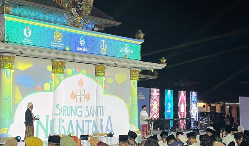 Kementerian Agama (Kemenag) menggelar kegiatan “Sarung Santri Nusantara” di Gedung Negara Grahadi, Sabtu (21/10/2023) malam, yang merupakan masih serangkaian kegiatan Hari Santri Nasional 2023.