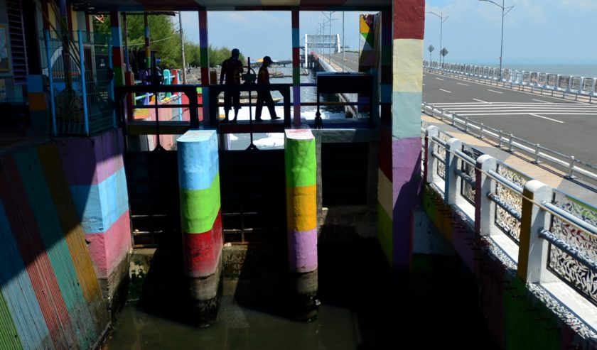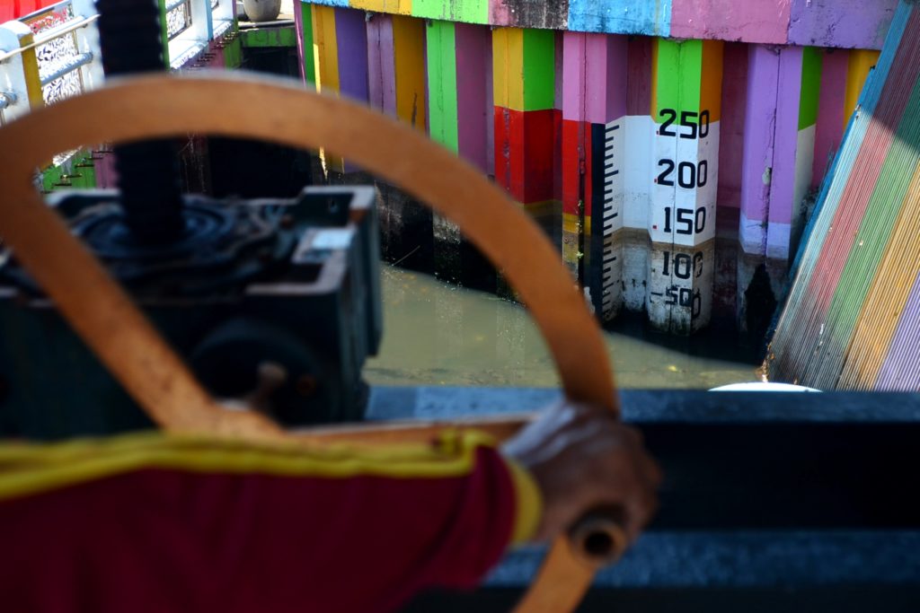 Musim hujan yang mulai datang membuat operator rumah pompa lebih siaga. Setiap saat harus mengecek kesiapan mesin pompa untuk mempermudah penyedotan air saat hujan turun lebat dan debit air sewaktu-waktu meninggi. Memastikan Surabaya tidak tergenang. (Foto: Anton Kusnanto)