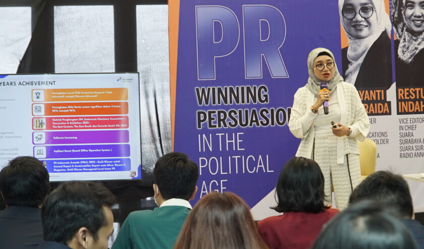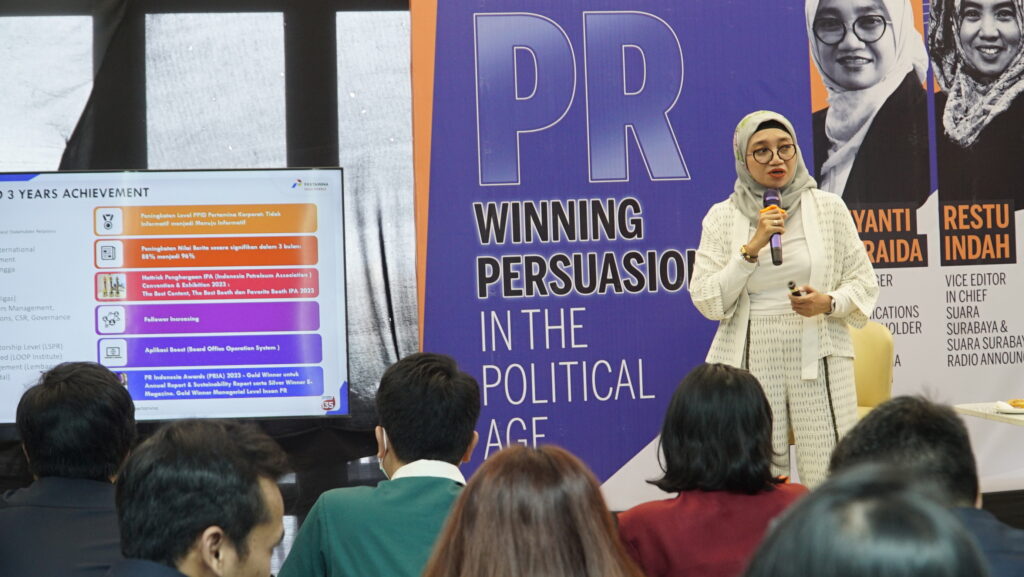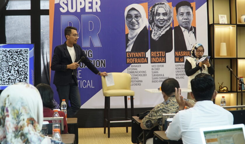 Digelar di Leedon Hotel & Suites Surabaya, Kamis (7/12/2023), “Suara Surabaya Academy Super PR Winning Persuasion in The Political Age” diikuti puluhan peserta dari berbagai instansi baik pemerintah, BUMN hingga mahasiswa.