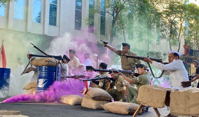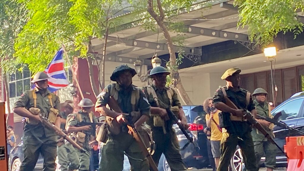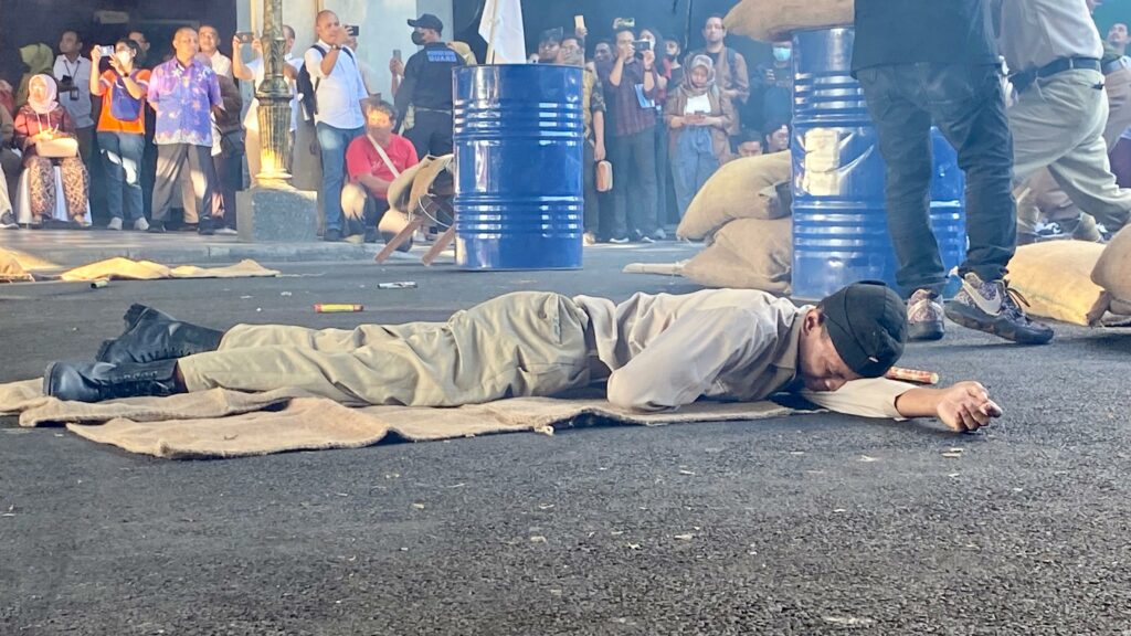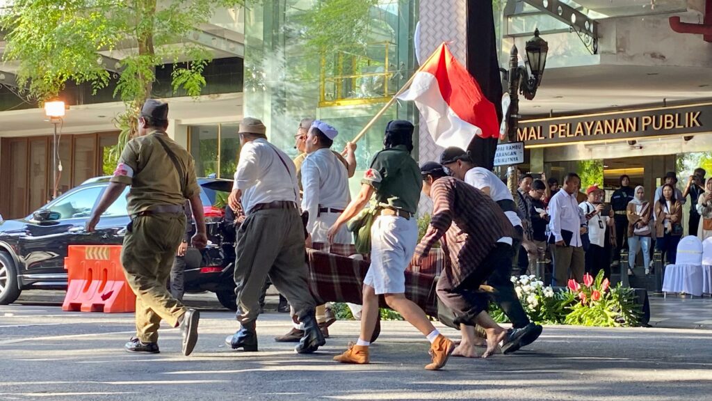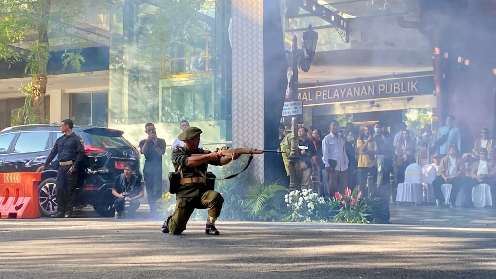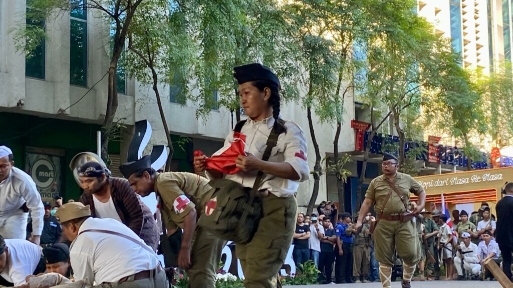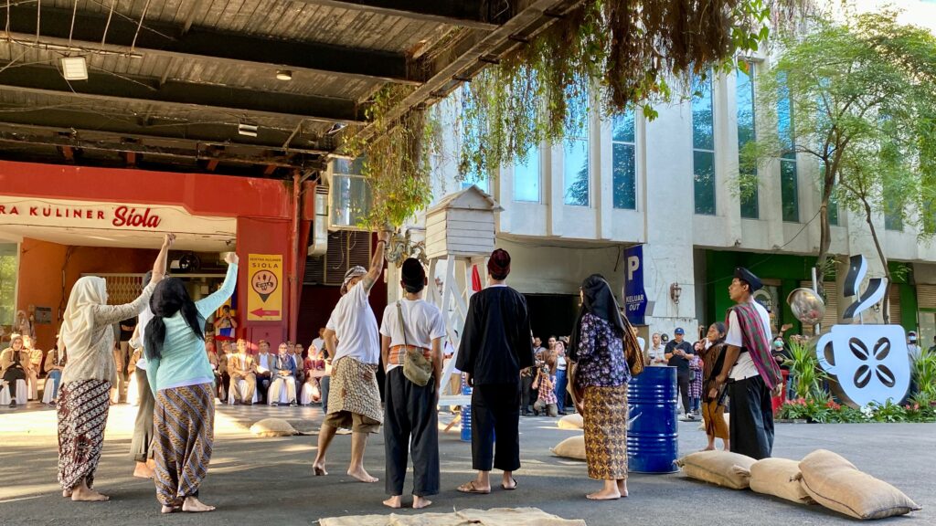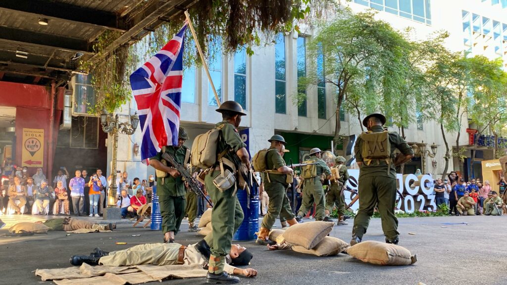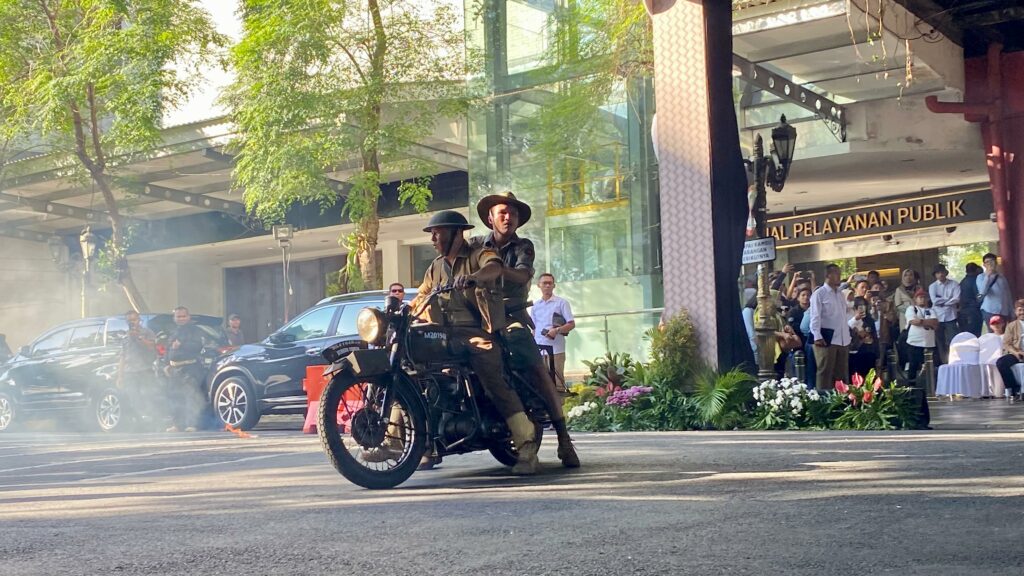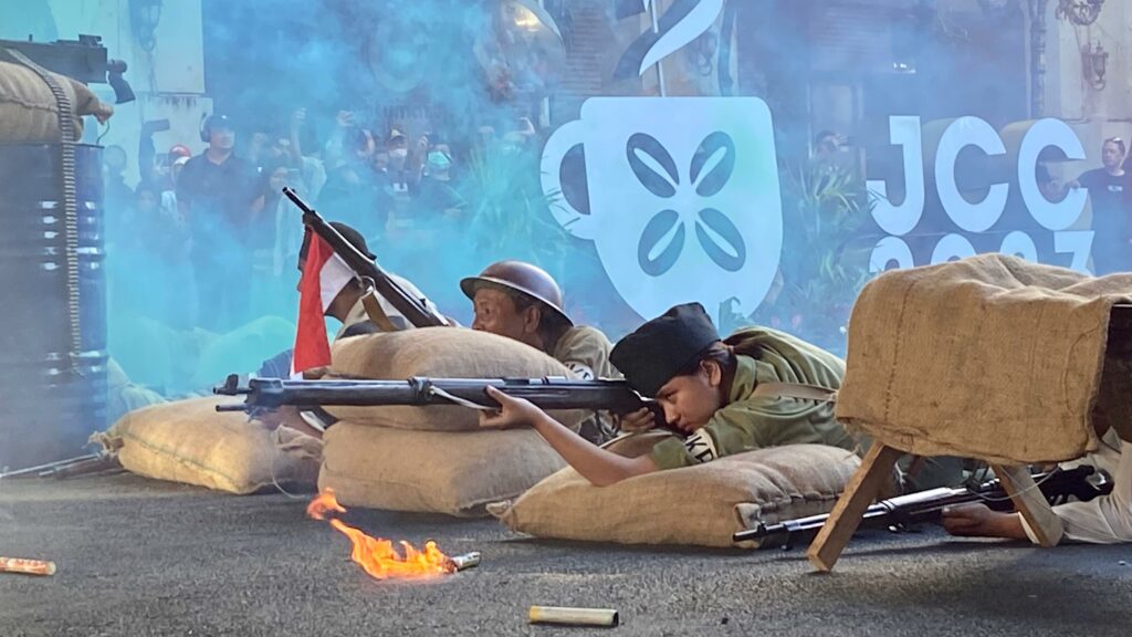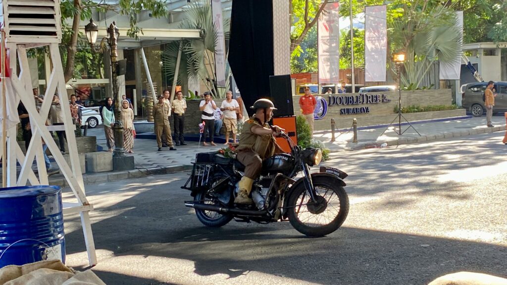 JCC 2023 & Festival Peneleh yang hadir di Jalan Tunjungan Surabaya, menampilkan sebuah teatrikal bertakjub “Teaktrikal Soerabaja Tempoe Doeloe”, yang menunjukan tentang perjuangan Arek-Arek Suroboyo dalam melawan tentara penjajah. (dvn)
