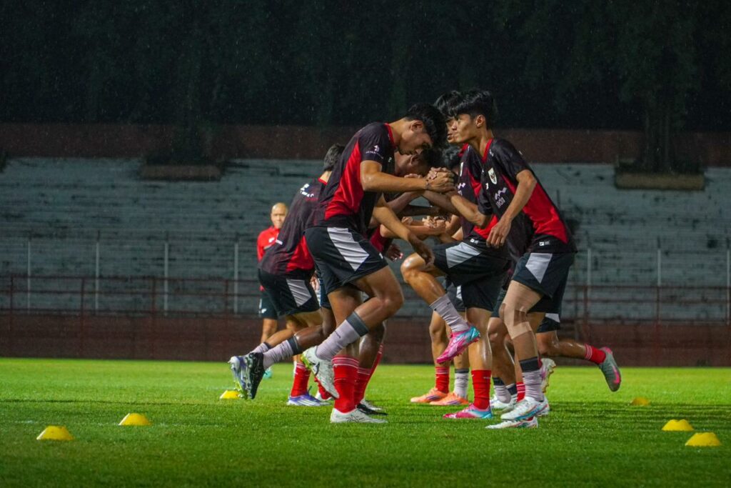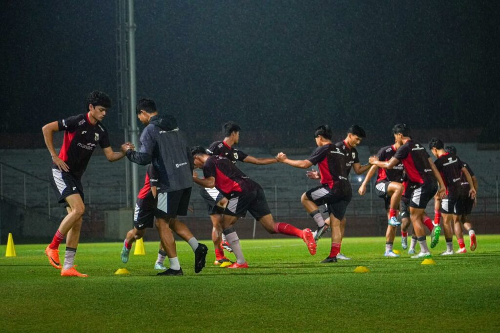 Timnas Indonesia U-20 sesi latihan di Stadion Gelora 10 Nopember dalam rangka pemusatan latihan di Surabaya pada Jumat (13/3/2026) malam.