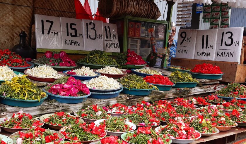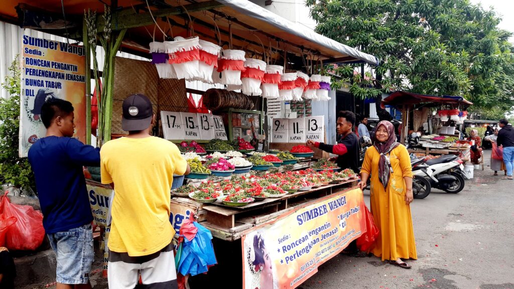 Tradisi ziarah (nyekar) jelang Ramadan menjadi berkah bagi para pedagang bunga di Jalan Pasar Kembang Kedungdoro Surabaya. Harga bunga naik dibanding hari biasa, membuat para pedagang meraup untung hingga 2 kali lipat.