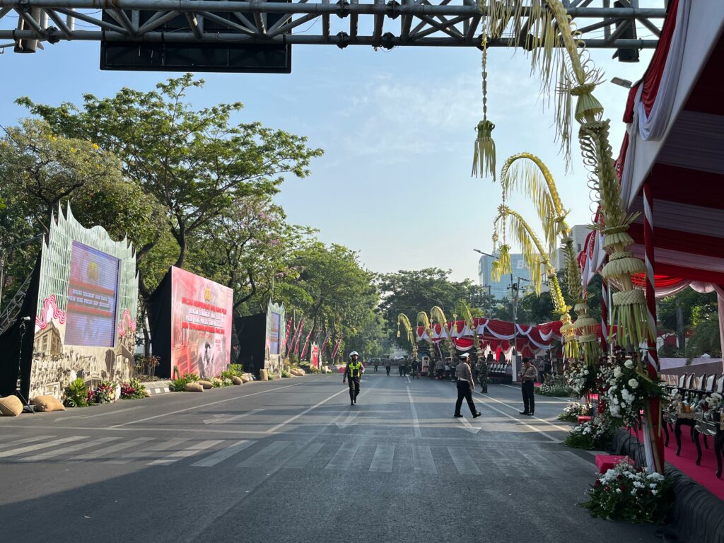 Kapolri memasuki lapangan upacara pada pukul 09.10 WIB, dan langsung menerima laporan upacara, lanjut berdiri di podium tenda tengah.