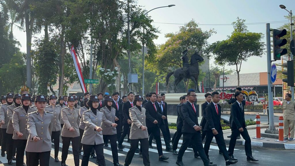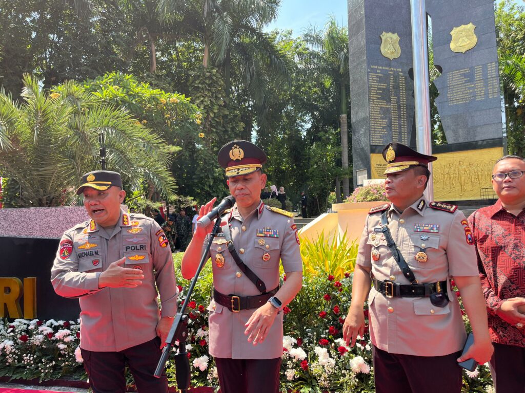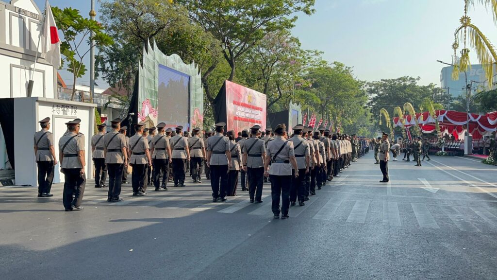 Jenderal Polisi Listyo Sigit Prabowo Kapolri memimpin upacara Hari Juang Polri di depan Monumen Perjuangan Polri Jalan Raya Darmo sisi timur, Rabu (21/8/2024) pagi.