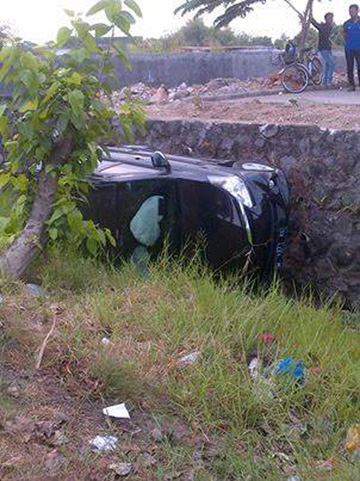 Avanza W 1271 XS masuk parit di Kemangsen Balungbendo, Sidoarjo pada Sabtu 14 September 2013 sekitar pukul 13.49. Kejadian ini menjadi tontonan warga.
